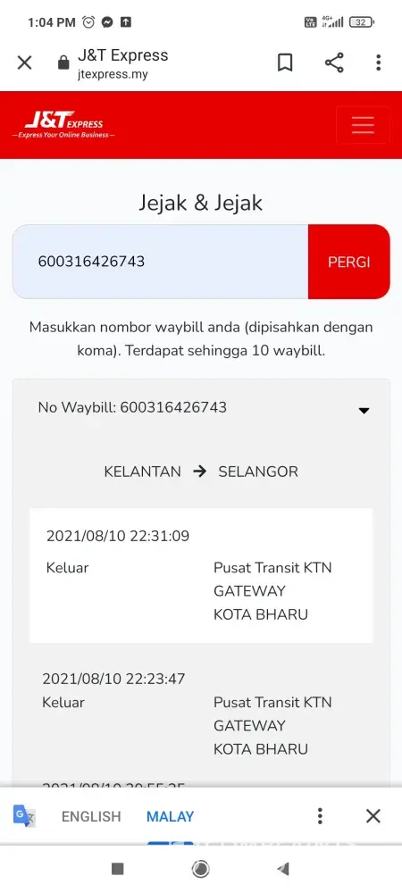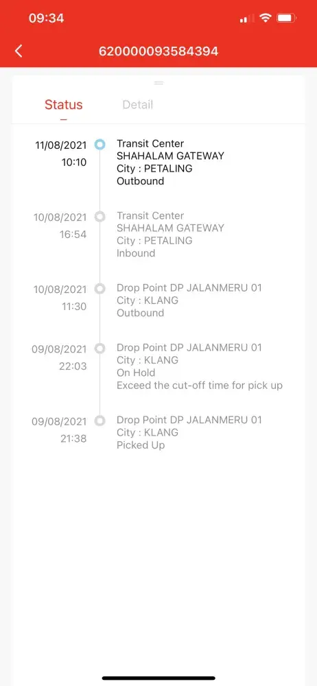 please check this tracking number. somehow it got stuck at shah alam getaway since yesterday and there is no movement until then.