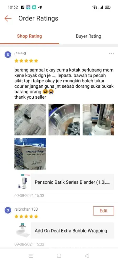 Semalam barang I sampai dalam kotak lunyai tau kotaknya? I faham barang banyak and korang kena sorting loading brg kena cepat. But its clearly ada tapping fragile tapeeeeee. So kenapa lunyai kotak di buatnya? Takkan seller hantar kotak dah memang lunyai? Nasib brg kat dalam wrapping bubble wrap kalau tak hancur barang. My mom punya barang fragile also and barang tu clearly nampak what inside sbb box tu wrap dengan bubble wrap sahaja and why nak kena koyakkan bubble wrap tu? Rosakkan barang orang ke? And ada crack bottom of my mom punya brang. Nasib dpt my mom yg okay so then dia accept. Kesian la seller and customer yang nak received. Kalau fragile handle sehabis baik. Bukan we not understand you guys punya situation but agak agak laaaa all loss or rugi seller tanggung. Always ada problem. Just a few staff je okay time handling barang. Most of ikut suka hati je. Belum lagi yang hantar barang ayat macam takde adab 😭 aduh apa la. Push push org laaa. One or two of them yang mcm tu. Yang lain so far acceptable