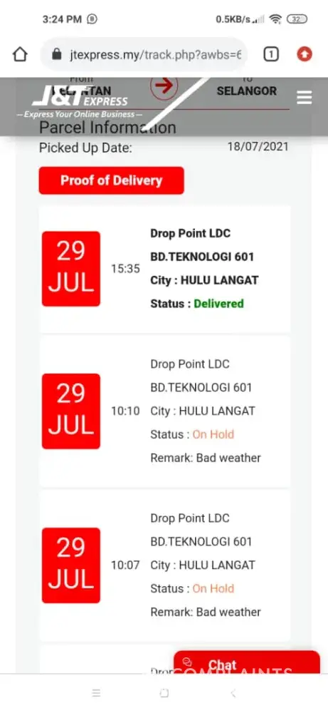 Again i check the tracking on 16/7, the parcel still at drop point LDC CHAN SOW LIN 604.