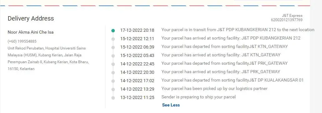 Parcel saya tidak sampai sehingga ke hari ini. Check status, 15hb Dis 2022 lagi parcel ada di J&T Kubang Kerian 212.