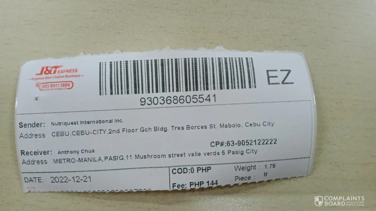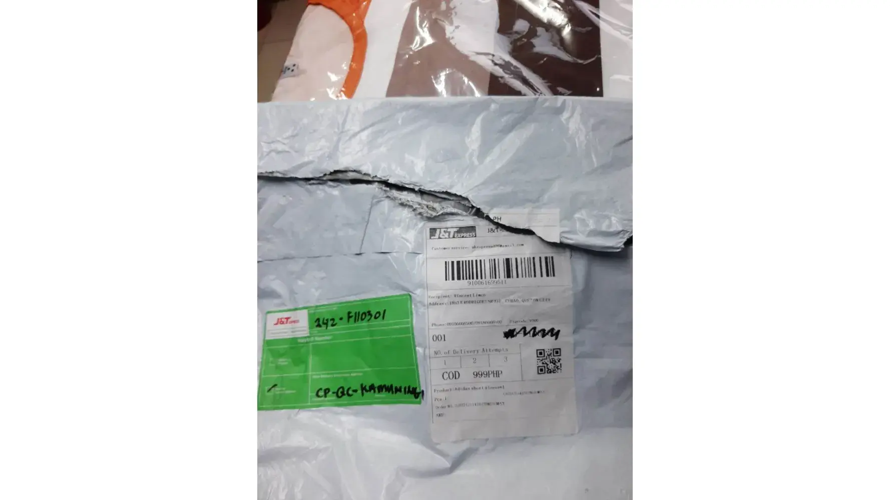 On January 08 ,2022 at 1 :23 in the afternoon a j&t rider delivered 3 parcel on our house . The 2 parcel is correct , problem is on the 3rd parcel . Yes we are expecting a parcel worth one thousand pesos for a dishwasing liquid but that was ordered by my brother not my father who is a senior citizen already. The parcel was received by my 16 years old sister hence did not hesitate to received the parcels . Upon checking the parcel was not a dishwashing liquid . Its a rugged box with a lot of way bill stack on it. Listed on the fake waybill is my dads name sesenando toyado and our address the product type listed is a SACK worth 1099 pesos but the one on the box is a broken lampshade . I did visited the Abangan DH J&T and they mention it was order thru facebook. My father who is a senior citizen did not order anything online . Its alarming that J&t would allow this kind of parcel to be delivered . Its evident that there are a lot of way bills that is posted on the box. We want to received a full refund of this item . And its also alarming that there are 2 people using one account for j&t riders . I track the details of the order and it shows that a certain ALJAY REBUDLO delivered it but when we confronted the rider he mention that there is another person using his account for delivering parcel . That person was caught on cctv when he arrived at out front house he is already holding on to this box . I hope youy can action on this matter .
