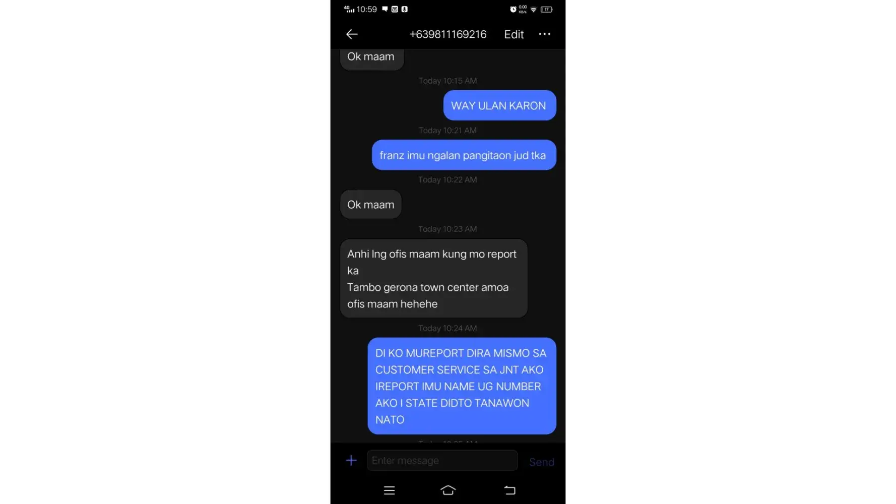 Hi Good morning and Merry Christmas, My Christmas was really good but it was ruined by one of your rider , i was really patient and understanding cause cause his reason was raining hard but he hadnt delivered it for 2days already now is the 3rd day and there is no rain i called your rider if he could already deliver it cause i have works to do but your rider sarcastically replied theres still rain and even if it's not that hard i could still get wet and they cannot deliver it if theres still rain i checked the weather but theres no rain i told them that it will go on RTS but rider told me they cant do anything about it if it will go on RTS they wont deliver the parcel cause it's still raining (even tho theres no rain) i told them that it will go on rts if it will not be delivered today i will file a complaint but rider had the audacity to say just file a complain and go to the office so that we could file a complain how disrespectful your riders are?, PLS TAKE AN ACTION TO THIS ISSUE BECAUSE IVE BEEN EXPERIENCING THIS EVEN BEFORE, I EVEN HAVE A LOT OF RELATIVES WHO COMPLAINED A LOT CAUSE RIDER WONT DELIVER THEIR PARCEL. WHATS THE USE OF COD THEN? THE RIDER EVEN TOLD ME TO GET THE ITEM ON THEIR OFFICE INSTEAD THE NAME OF RIDER IS FRANZ LUNGSOD HIS NUMBER IS [protected] and +[protected] my order tracking number is [protected]