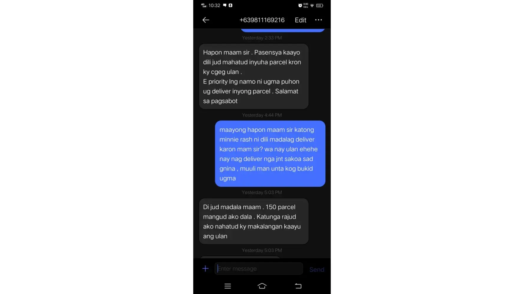 Desired outcome: Deliver it to my address, don't make any reasons or alibi that made you delivered it to me but actually it didn't happen, if you cant contact me, gosh, try asking people here in our small barangay you will not get lost i swear.