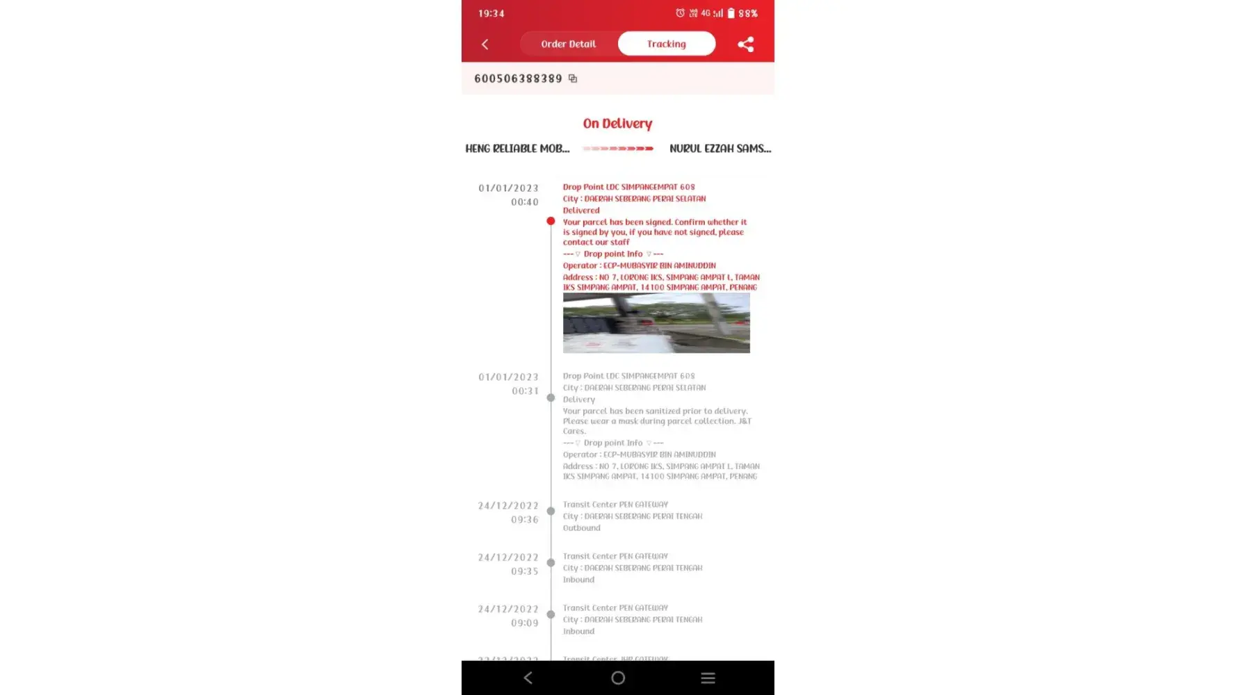 Had send out one parcel on 21/12, but the receiver haven receive yet by now. Had went to the j&t centre and checked. First time, it says delayed due to 12/12 season which is understandable. 2nd time, it says still at warehouse due to too many package ? And requested image of parcel & product image, if not they will not be able to find the parcel. Literally have no idea why they would need the product image to find the parcel