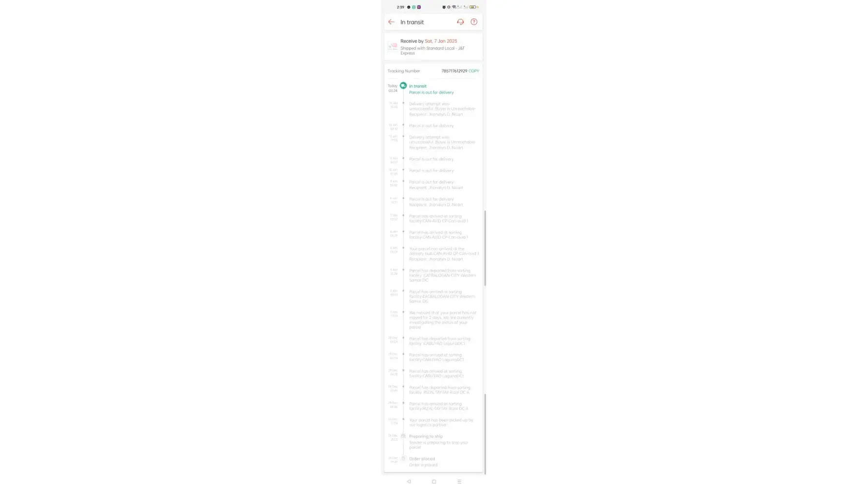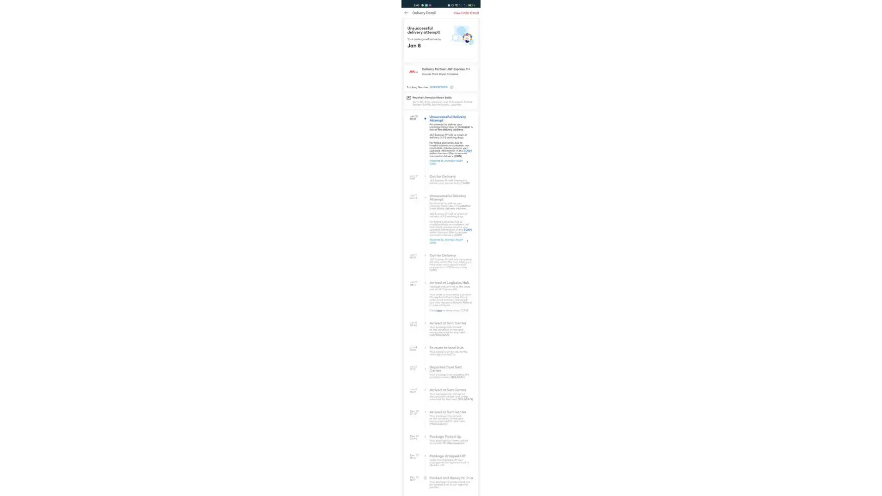 I always check my delivery updates on Shopee. It had been 16 days since I placed a local order. Upon checking today, I read that J&T ’attempted’ delivery yesterday, January 12, 2023, and that I, the buyer refused to accept the order. Now, that is stupid. I did not get ANY advice from ANY J&T rider and I already paid for said order so why would I refuse to receive it? The riders would call or send a text if they are leaving or had left the parcel at the Receiving hub of the condo where I am staying.