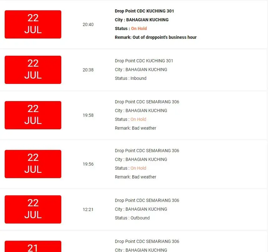 why my parcel hold untill 5 day on Cdc 301 bandar teknologi