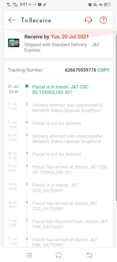 What happened to J&T in Drop Point LDC PUCHONG 601 area as I send out the parcel since 8th July but until today 23th July my client still didn't receive the item. It's been 3 weeks already :((