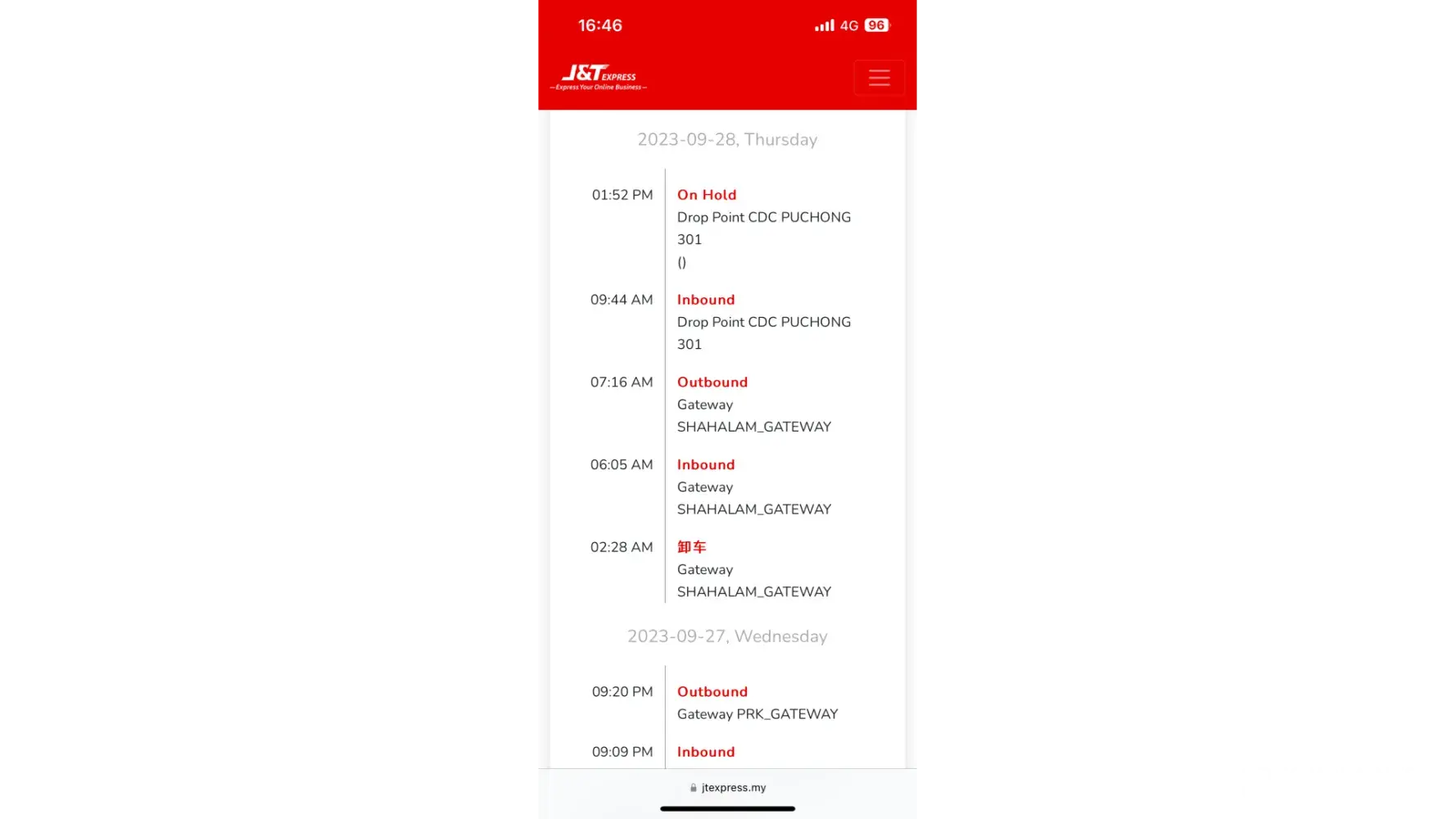 Stuck in J&T cdc PUCHONG 301