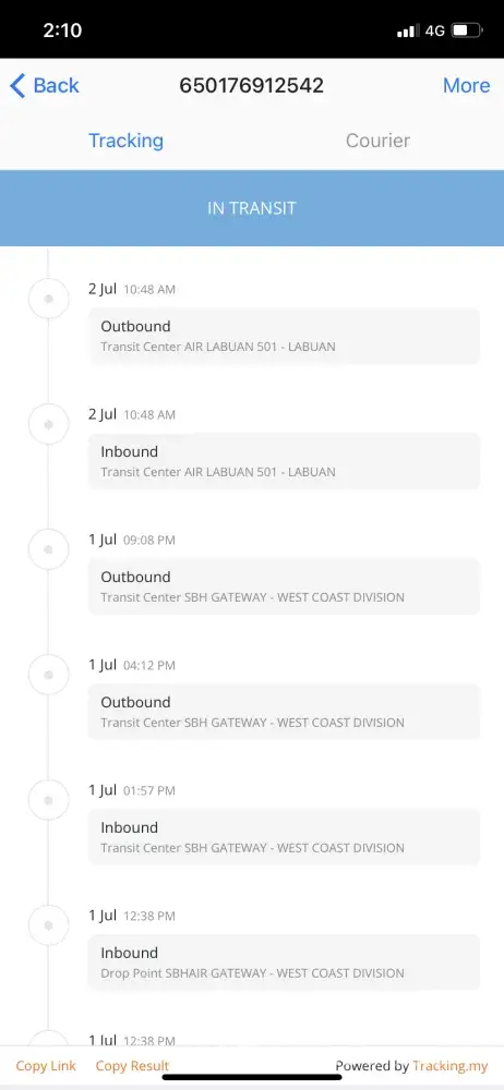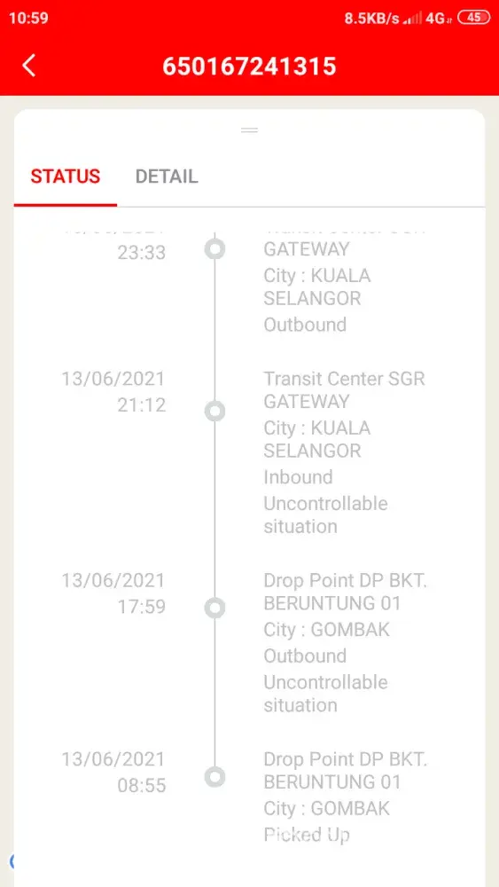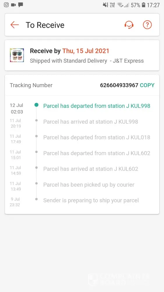 Barang tu pos pada 29 Jun, seterusnya inbound J&T Air Labuan 501 pada 5 July. Lepastu pada hari yg sama (5 July), outbound J&T Air Labuan 501. Tapi sehingga hari ini, tak ada update langsung status lepas outbound dari J&T Air Labuan 501. Call J&T Hotline 3 kali sejak 5 July, hotline kata mesti sabar tunggu, ini dah stuck lebih 10 hari, tunggu apa lagi! Penerima bayar RM12. 72 untuk kiriman ini, dan sudah lebih 15 hari kenapa tak sampai lagi! Bayaran RM12. 72 pun lebih mahal daripada yang normal, dan memang harap dengan bayaran ini boleh kirim cepat, mana tau dah setengah bulan tak kirim. Cepat kirim, jangan stuck lagi