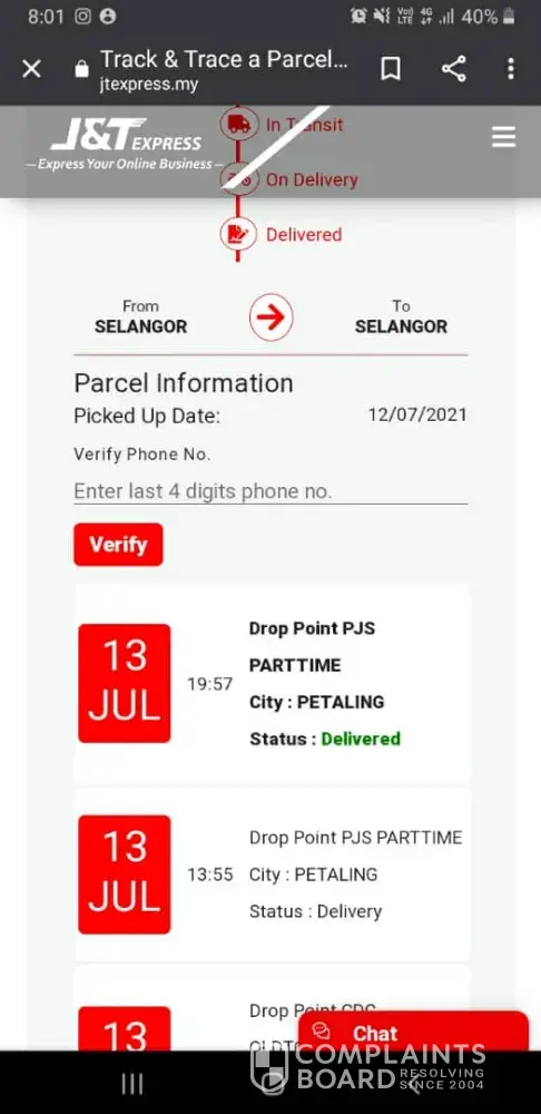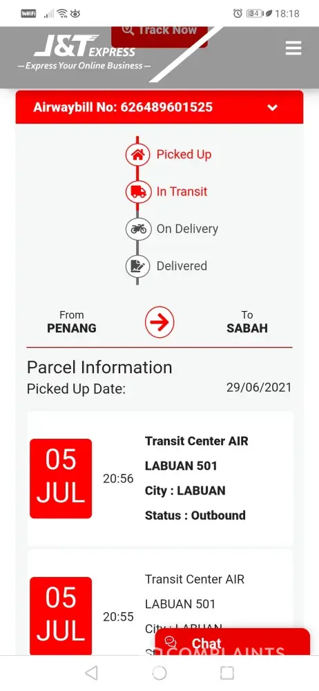 J&T Express Parcel stuck in Air Labuan 501 J&T