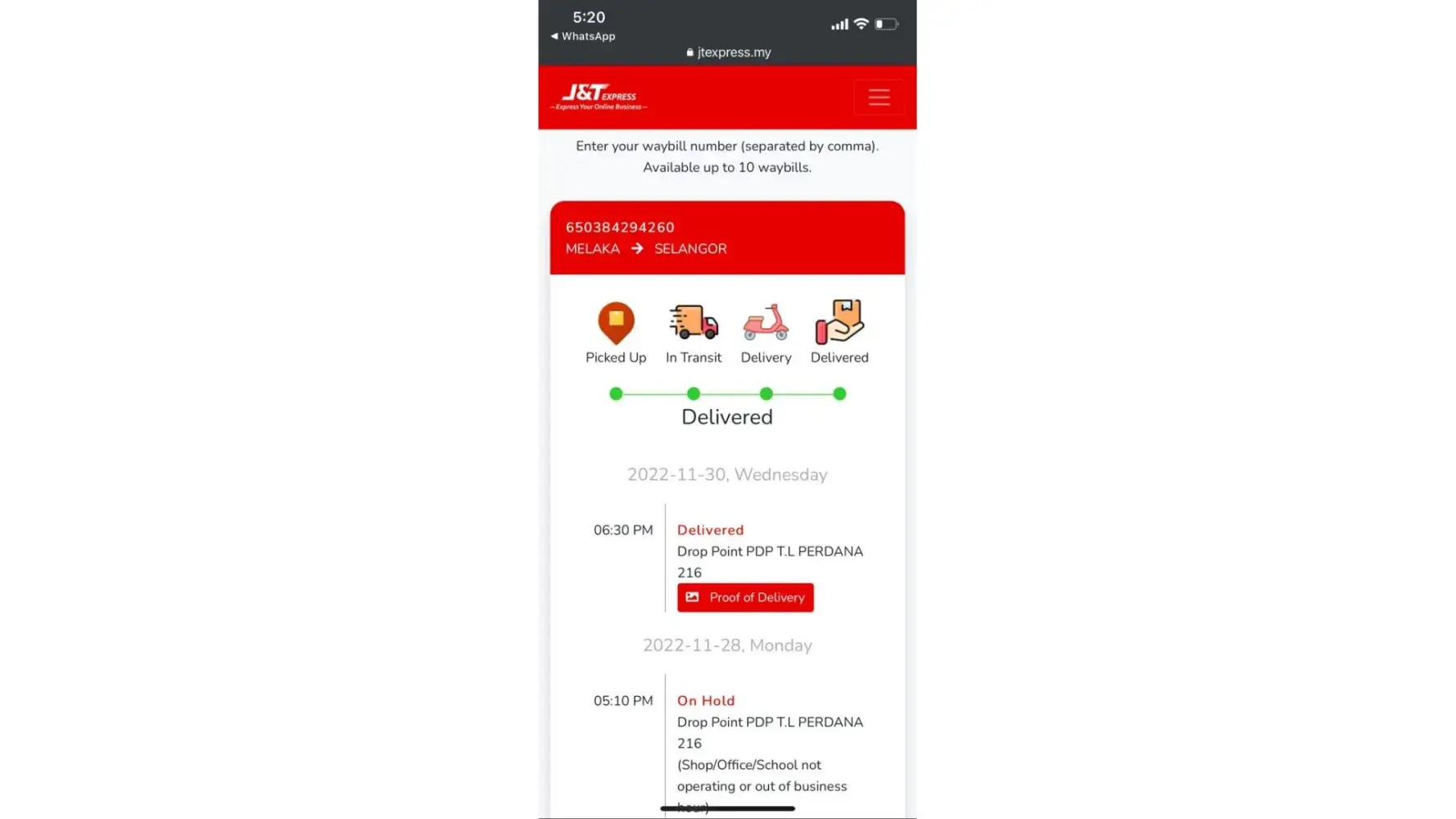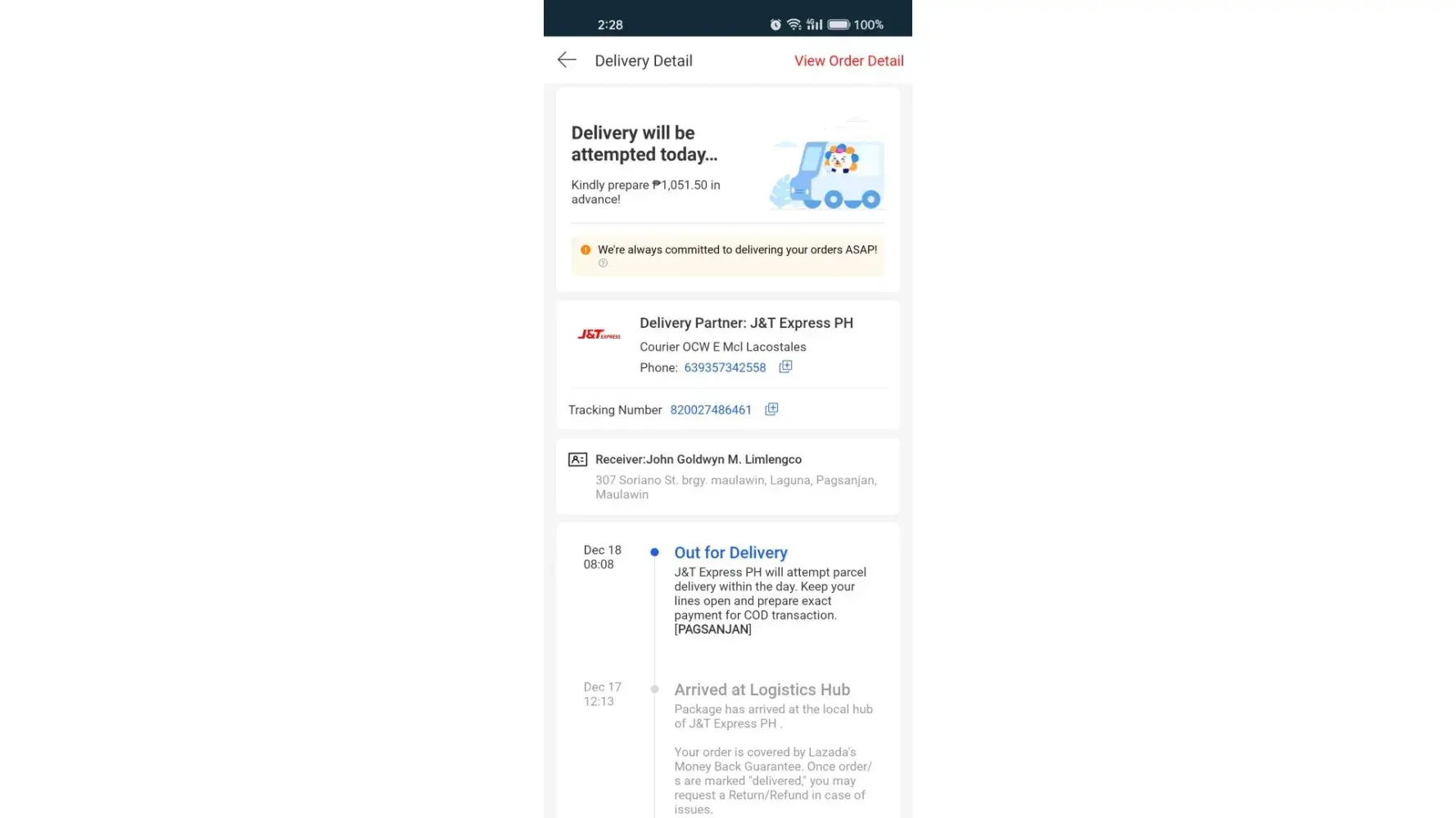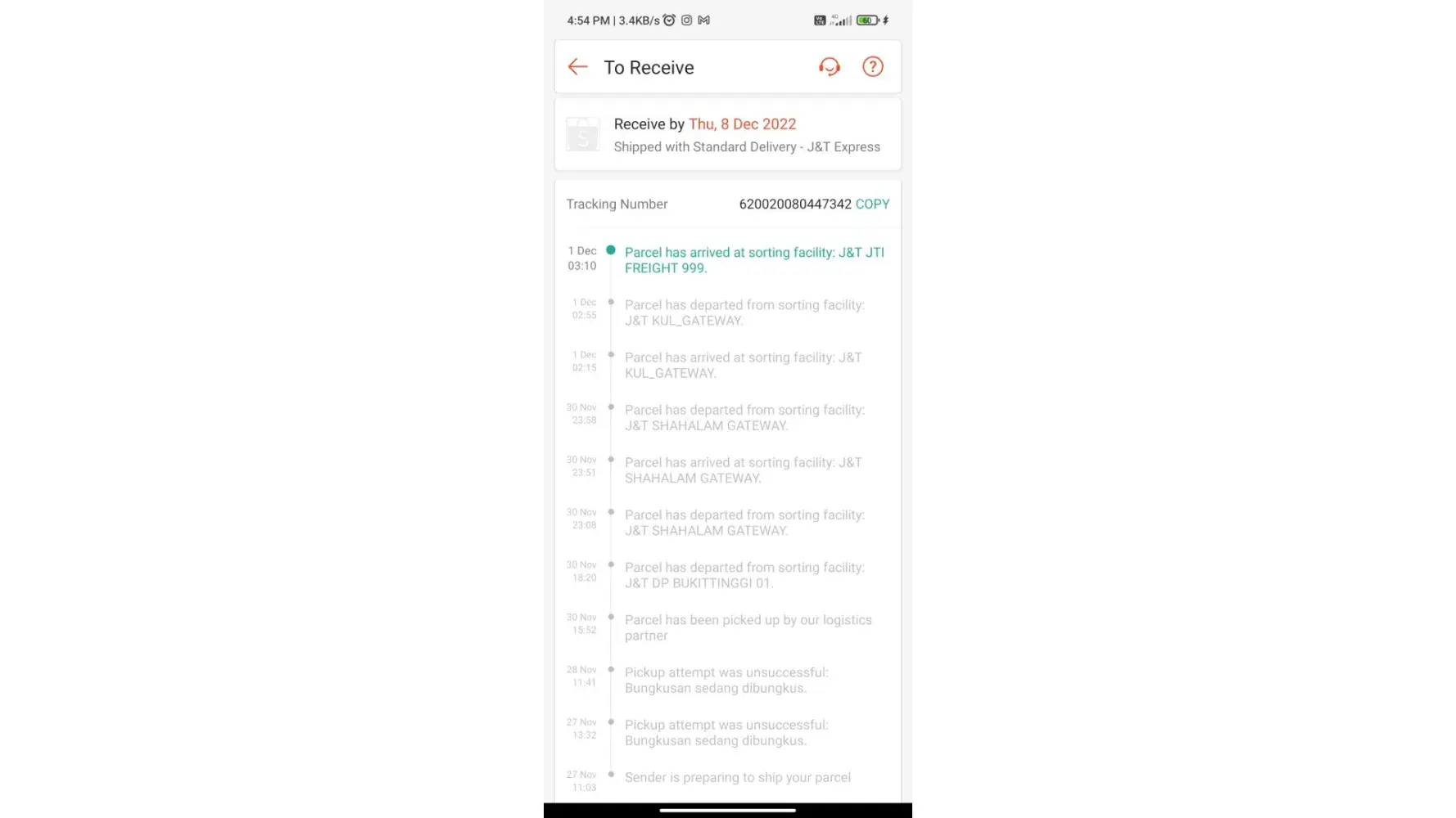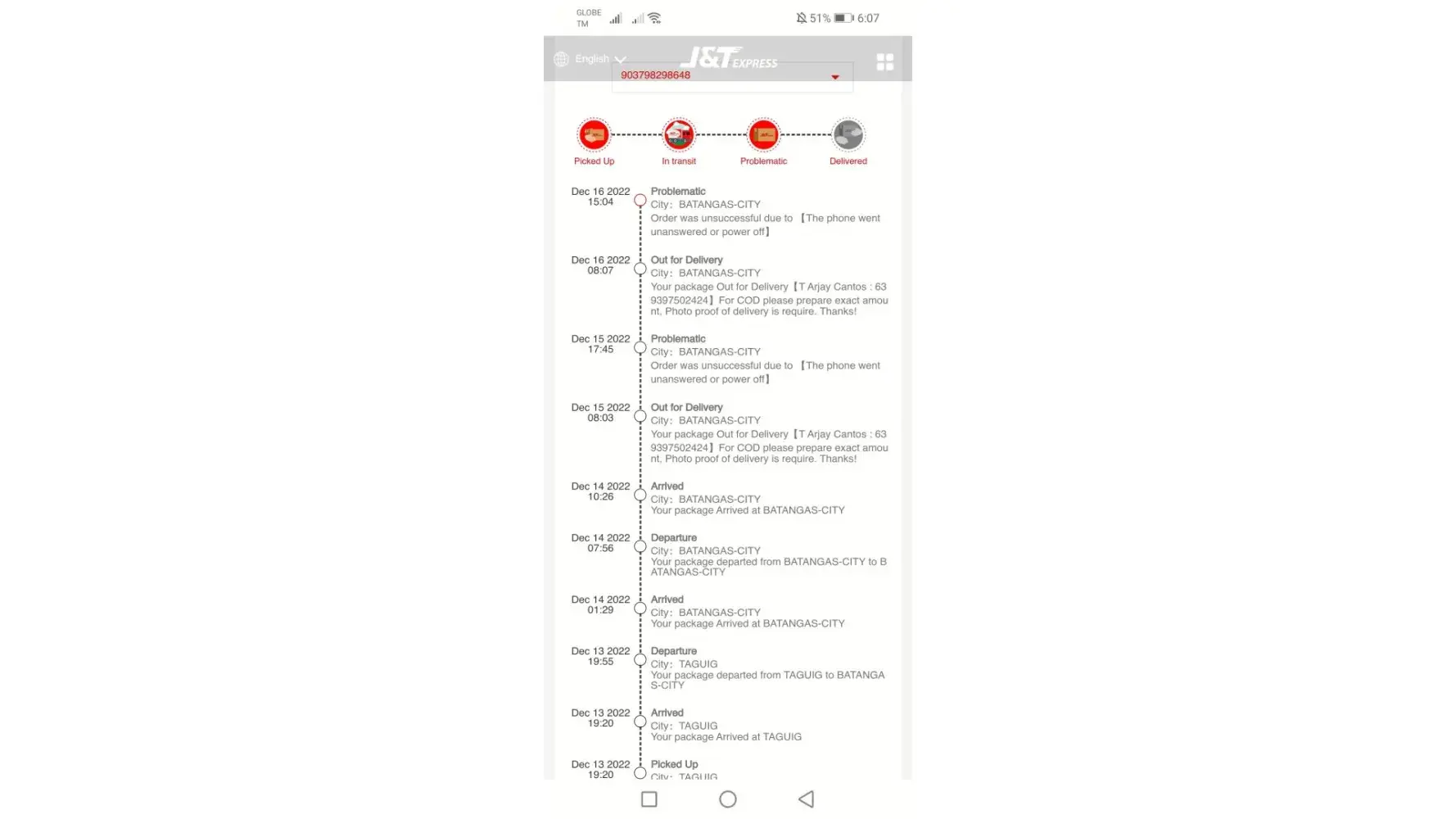 I have an order with J&T as the courier. It arrived at J&T's hub/warehouse here in my locality at December 14. Usually, I would already have received the item on the same day or the day after (Dec. 15).
