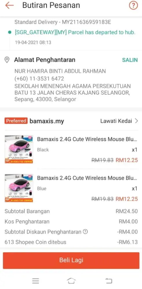 Pesan barang dari shopee. Tempoh penghantaran yang lama. Dan sehingga kini barang masih tidak diterima. Mohon pulangan wang kembali.