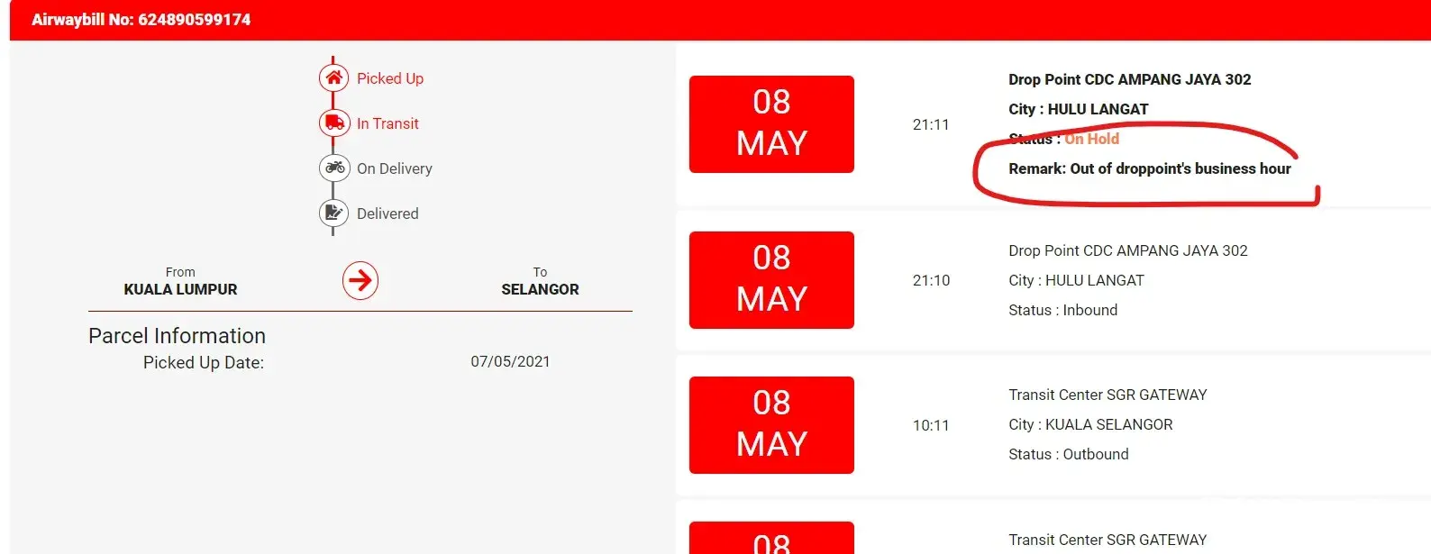 parcel stuck at transit center sabah gateway 04