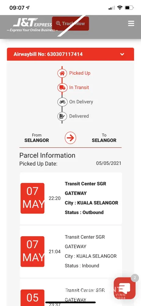 I went to J&T Express to courier a parcel from Selangor to Sarawak on the 5th May 2021. Next day I check the status it shows the parcel is at Klang (6th May 2021) already. Then the update keep remaining on 6th May 2021 until today.