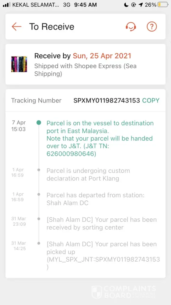 My parcel still stuck in klang since 22april 50140214988