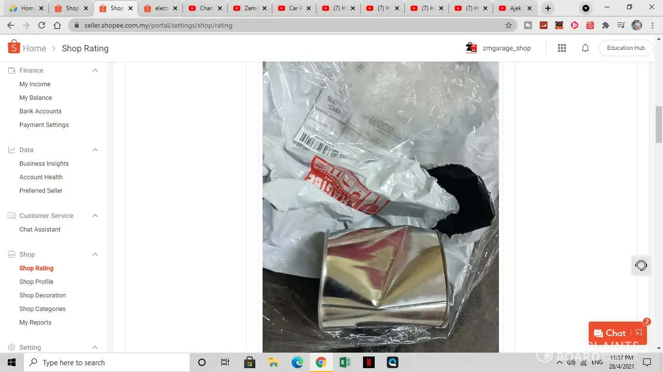 pada hari ini 16/4/2021 pelanggan saya telah menghantar aduan bahawa barang yang diterima rosak teruk dan pecah. walaupon setelah di wrap dgn bubble wrap dan ditampal dengan sticker fragile.