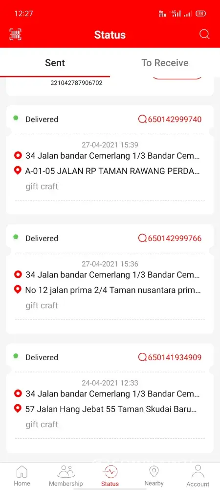 I was in Jalan Perintis, the parcel send at Jalan Pengacara.