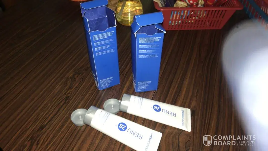 Product: 2 tubes of Renu 28 gel were opened and contents were removed. The blue boxes that store the tubes were already opened when outer brown box was opened. The silver foil on the inner side were removed. This silver foil is a sign of unopened brand new tubes of gel. Clearly the tubes were tampered with.