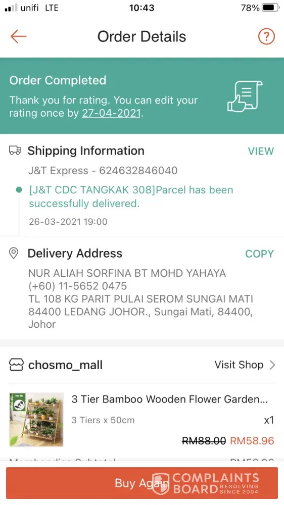 My parcel still on hold since 27/3 at J&T JHR GATEWAY- hub JHR322.
