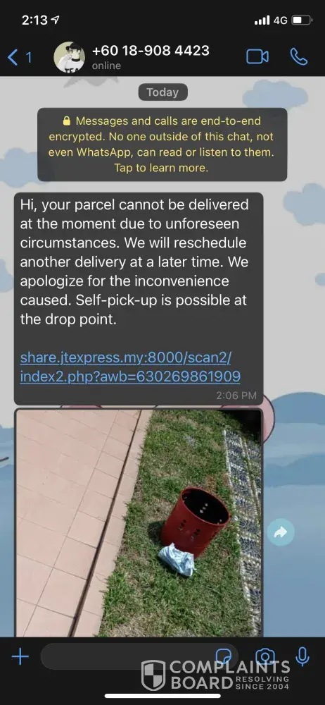 Desired outcome: I hope this matter can be resolved. Warn all J&T employees to deliver the goods to the receiver's doorstep