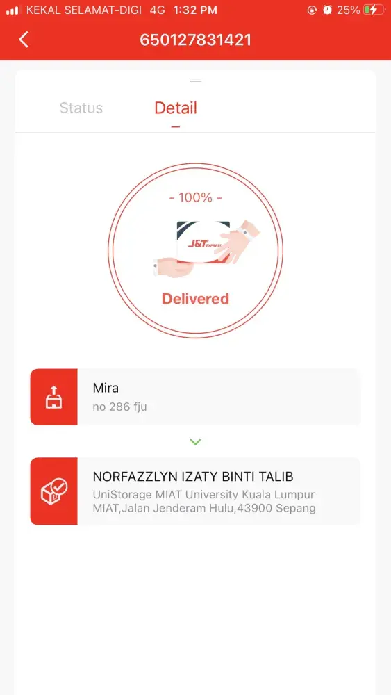 I am complaining about the attitude of J&T workers. They refused to deliver my stuff to my doorstep because I live in a multistory house. All shippers have to go up to deliver the customer's goods because that's your job not us. I have filled in the complete address. Just refer the address. Do not call me just to tell me to come down and get things because that is not my job. I am a receiver. I am upset of the J&T staff. You want to work, you should know how to work as a dispatcher. I am not your slave. Please take a note.