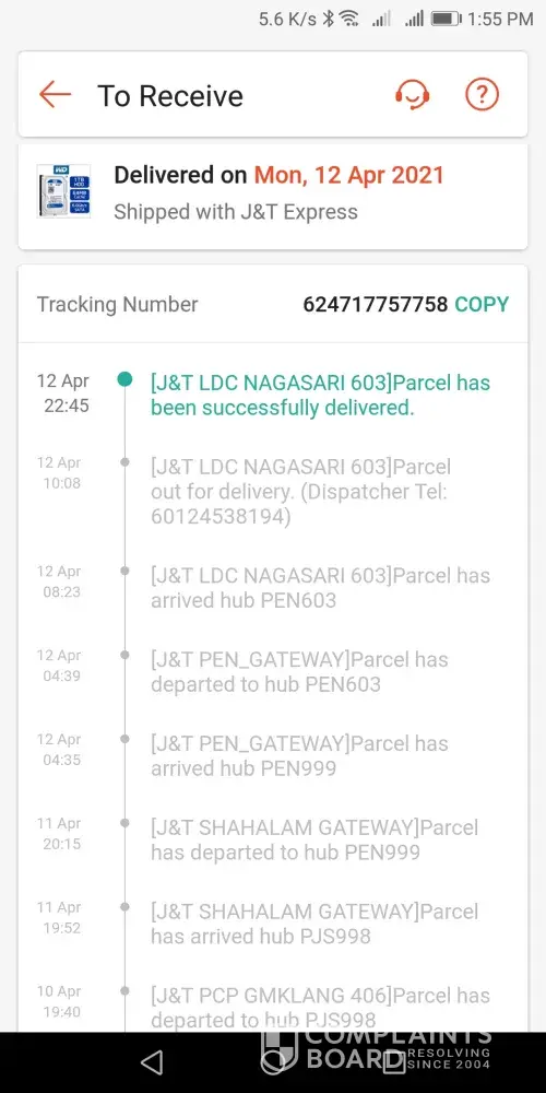 the runner clicked item has been delivered on shopee on friday evening but i didn't get the item yet eventho i've always at home that day then the runner didn't call or notice me about the item that they have delivered, i called the runner but he doesn't answered me then a day after that, i check on jnt tracker about my parcel and it said i already sign my parcel as delivered but it's not my signature tho and i called him again but still not pickup my call. after two days, i called him he said he sent to the wrong house but it seems suspicious like he actually do not even send to my address but idk just my thought. the picture below stated that the item has been delivered on friday at 7pm but the we do not received any item.