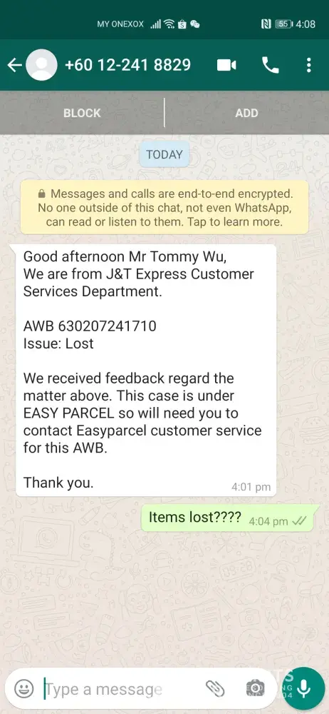 So my humble request, please do not repeat this to other customers and please trained well delivery driver on how to communicate politely to customer. The whole team j&t Klang branch was not responsible.