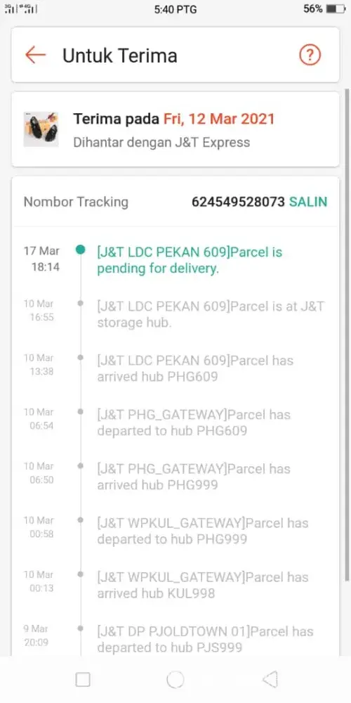 Mimi here. Parcel saya sampai di tenom dari 9 mac n until now still xterima lagi parcel tu. Lama sangat j&t tenom nk peram barang saya ye. Dari 9 mac - 20mac. Jauh sangat pejabat j&tdgn alamat saya sampai10 hari ambil masa untuk delivers barang tu. Padahal jarak 1.2km je dgn alamat tu. Dah la saya xdapat makluman mengenai barang saya dah sampai tenom, staf j&t memandai je tulis di status custemor minta delivery pd hari lain since 9 mac until now. Memang teruk la woker j&t tenom ni. Selalu macam ni kan.