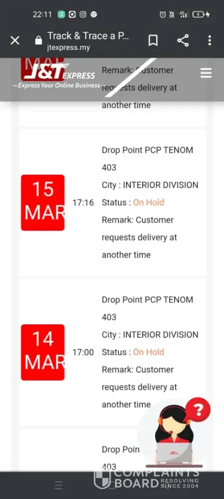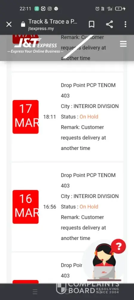 My parcel reached J&t storage hub Seri Kembangan since 9 March and it should be received on 10 March. However, it still stuck at there until today 13 March. It was already 5 days and the status is still showing 'on hold'. Can I know what's happening? I really need that parcel ASAP pls...