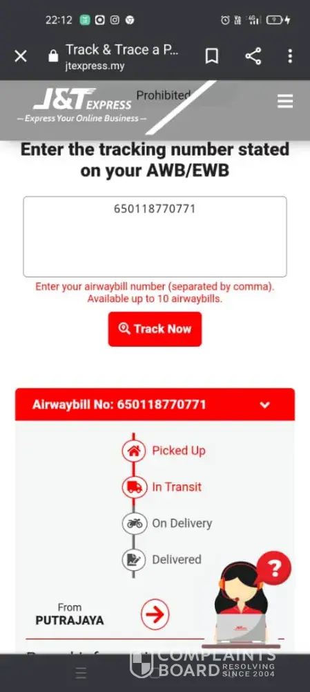 Disini saya ingin memberitahu bahawa barang saya dah terperap lama kat J&T WPKUL 998, barang saya tu kecil je, bussiness card risau tercampak2 ke mana je tak perasan sebab ada 19 helai je dalam tu. Tracking number adalah [protected], dah dekat dah dengan rumah kat wangsa maju. Pleasee saya perlukan dengan kadar segera. ðŸ™ðŸ˜
