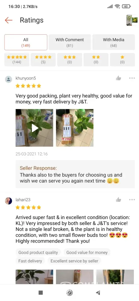 I have been declined by my local JnT Bkt Beruntung to deliver my product Packed in carton box parcel to customer in Malaysia. Reason given the contents is live plant which is forbidden in policy. I hv lodge complaint by phone to report other Shopee sellers are blatantly advertising Jnt as plant courier. Also customer reviews and photo showed JnT delivered plants to them. I am a plant seller in Shoppee and i wish to use Jnt as they are close by but was told i can t deliver live plants. Clearly your Branches are practicing double standards or being paid on the sideline to go against company policy and serve certain sellers.