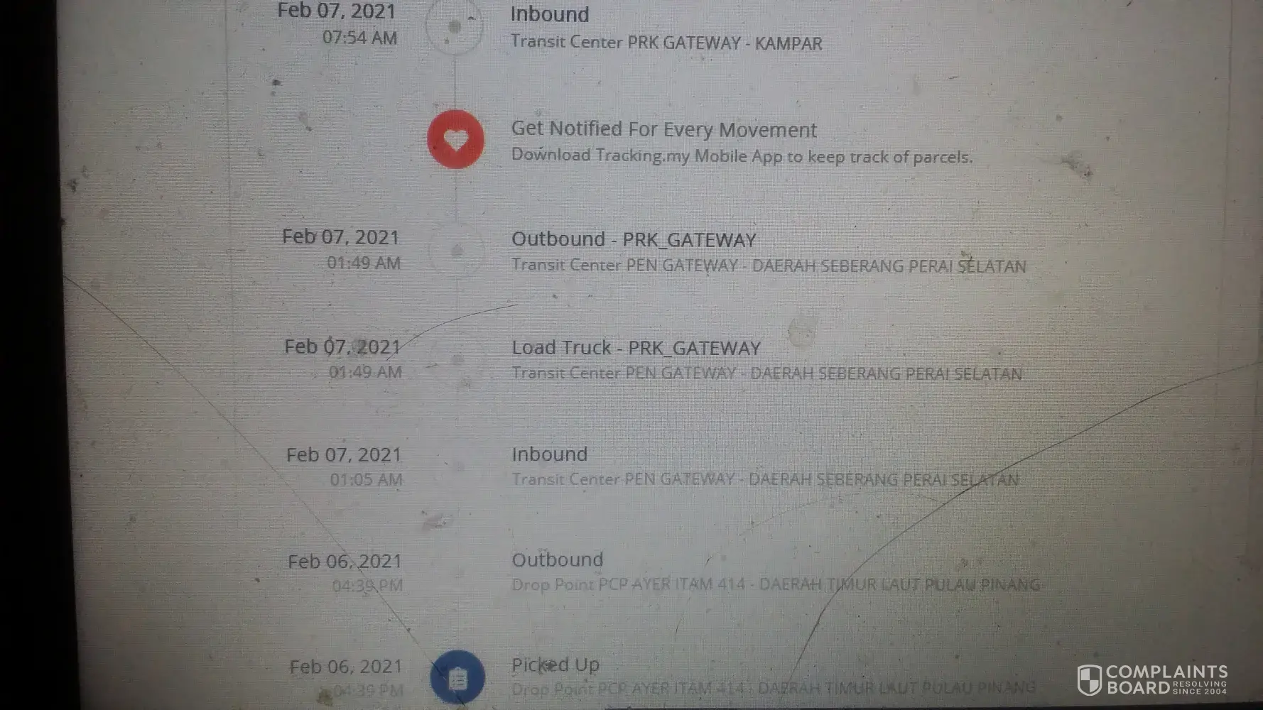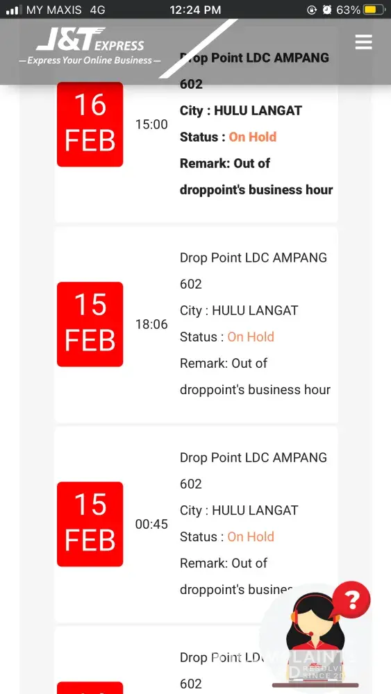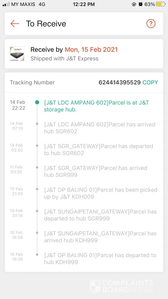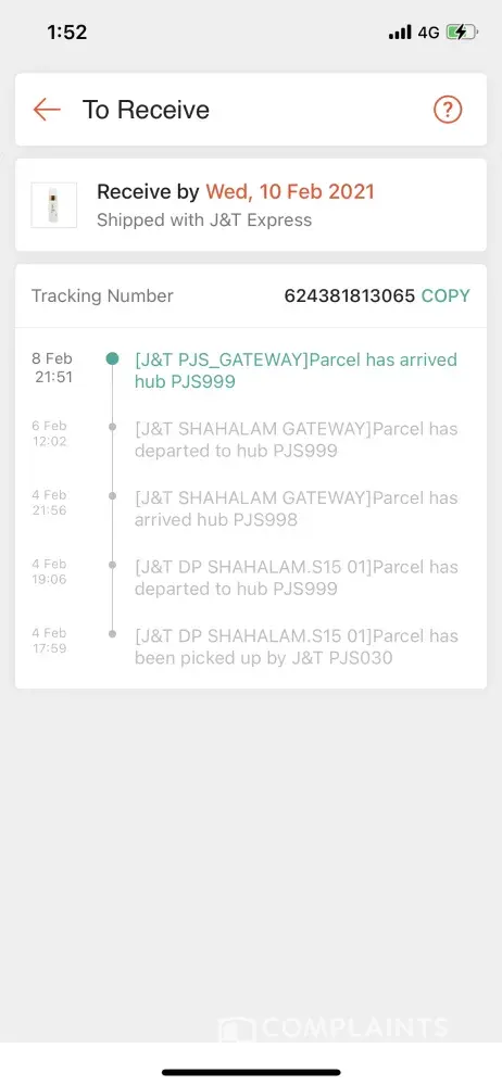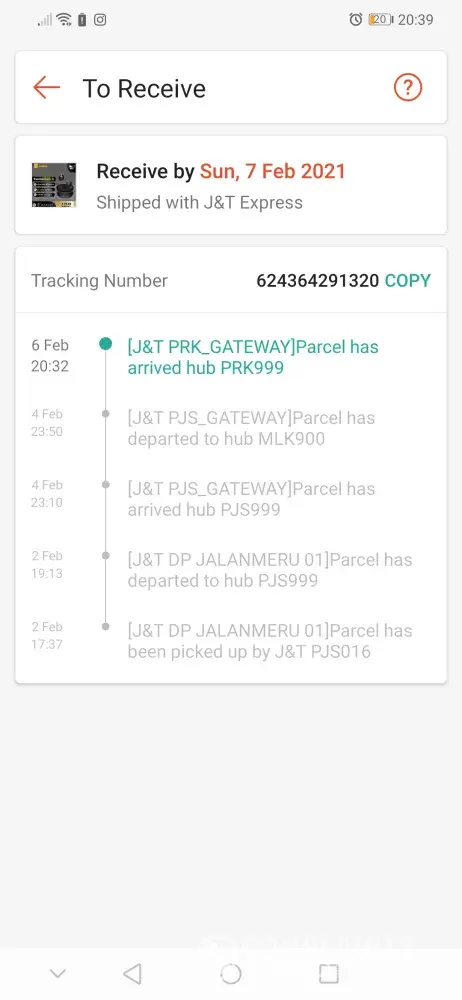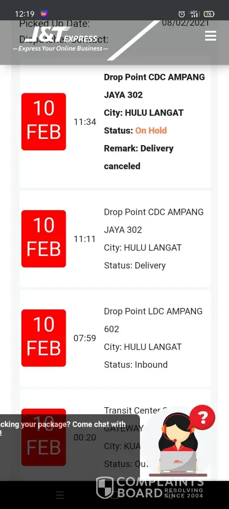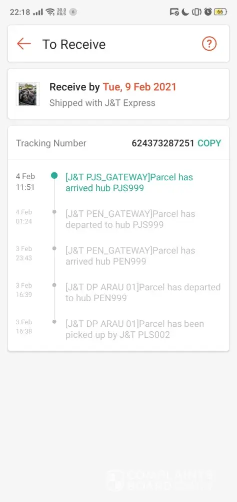 Parcel stuck at j&t perak gateway since 6feb.. Too late