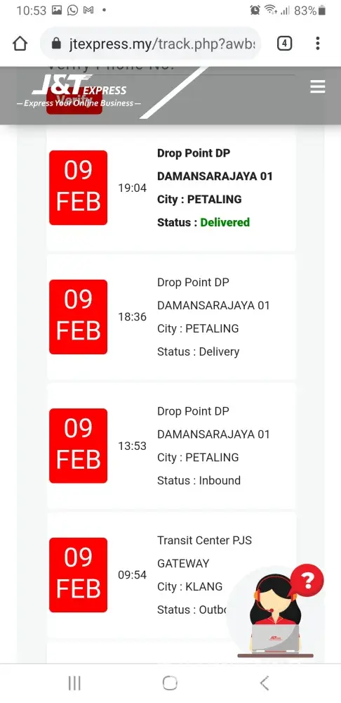 Assalamualaikum dan selamat sejahtera.. Saya memang rasa dah melampau. Seorang pekerja j&t menghantar brg dengan menaiki lori main campak je barang dan sebelum tu mereka telah siap² tulis 4 nombor belakang no telefon sahaja tanpa bagi salam. Sedangkan saya masa tu tgh buka mangga kat pagar. Pemandu lori nampak saya dan bila saya jerit ke mrk tapi tiada perkataan sorry daripadanya.