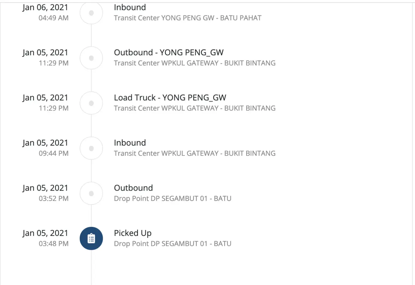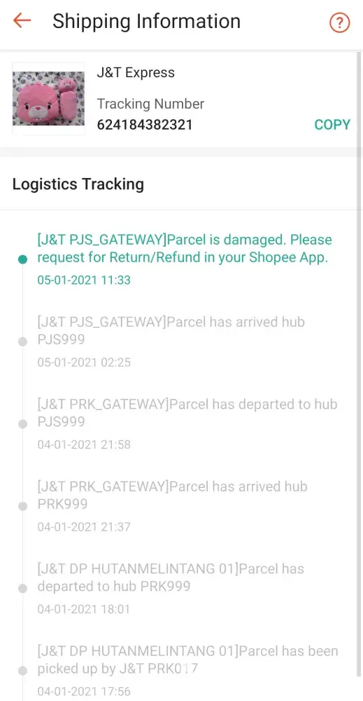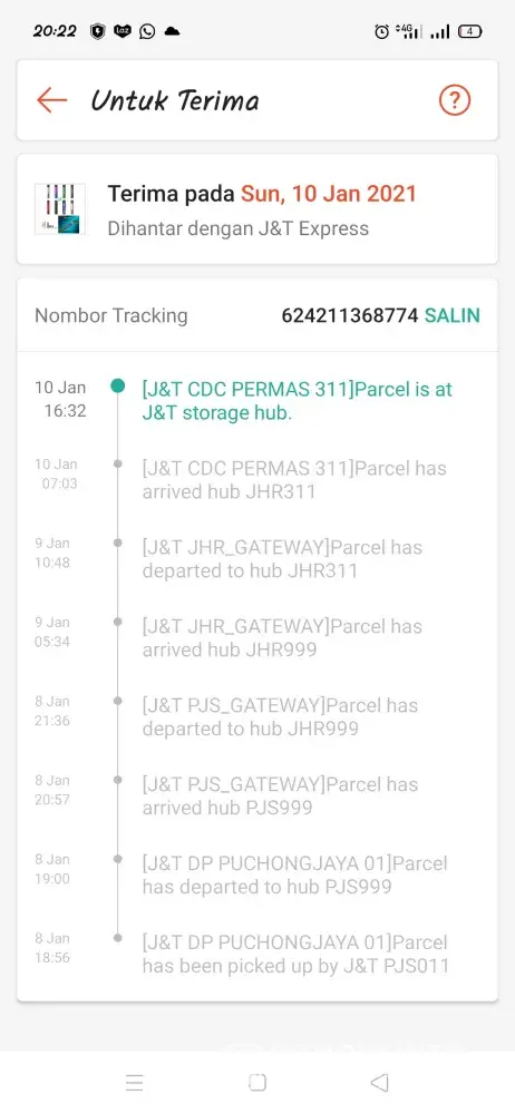 Later (29Dec2020 around 2100hrs), I checked (chat online with J&T Express Live Agent - Taufiq) with J&T Express online via https://www.jtexpress.my/- on my item's status.