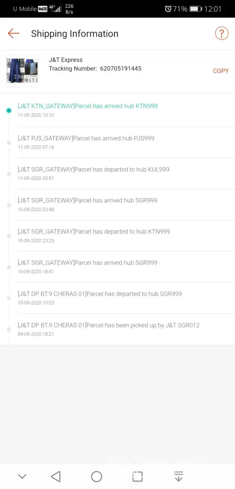 J&t what is you job? bawa barang asik salah negeri hantar, call customer services told that wrong place parcel issue after that, sama juga parcel tk jalan jalan. (dh bhk kali call customer service:jawab sini tk ada record) Bukan sekali sekale jadi gini, ni dh byk kali salah parcel ke negeri lain! Bila customer complain, tk puas hati pula. Tapi kerja macam hapa pun tk taw. Cuba tengok record tracking lama yg saya upload, nk berapa kali jadi issue yg sama?