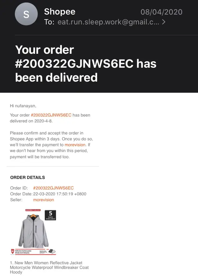 Dalam sistem ditulis delivered tapi sy tidak terima barang tersebut. Jika diteliti waktu delivery pada 10.4.2020 pada jam 1904 dan delivered pada waktu 1914.Hanya mengambil masa 10 minit dan ianya adalah sangat tidak masuk akal langsung.