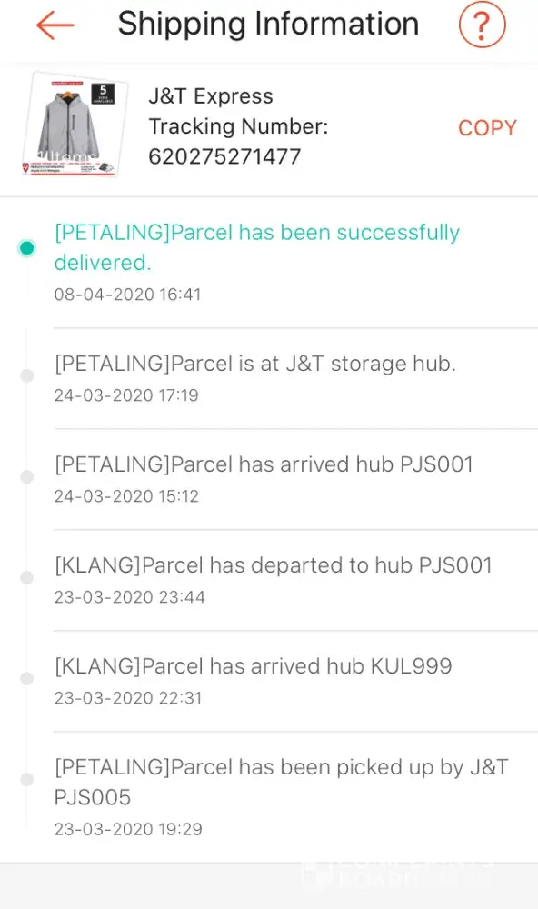 I have ordered something from ‘Shopee' Online Shopping. 8th April I've received email from Shopee ‘YOUR ORDER HAS BEEN DELIVERED'. How can they marked as ‘DELIVERED' when nobody wasn't there? My company was closed for MCO (movement control order) since 23rd March. If nobody there just give a call. we can arrange some other time. i made once report at Cust Service via J&T hotline number. Until now still no action n result from them. Ive called J&T Branch Kota Damansara many time n no one pickup my call. I can't go there (J&T Kota Damansara Branch) bcause of MCO. If not i will find out yr staff who's made deliver my parcel on that day n i will waiting there until i get my parcel! Where is your responsibility? Do i need to teach them how to trace who's ‘deliverd' the parcel on that day? They just need less than 24hours to trace their staff ‘who delivered' my parcel actually. Just call your branch at Kota Damansara n ask manager who's was working n made delivery on that day. Don't u have system to track all the staff attended clock in n out record? Before this your service very good and got no problem at all! But now ive got a problem. PLEASE, I WANT n I NEED MY PARCEL. Maybe RM50 is small for u. But RM50 is big for me n now I'M SO FRUSTRATED WITH J&T COURIER SERVICES.
