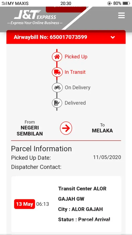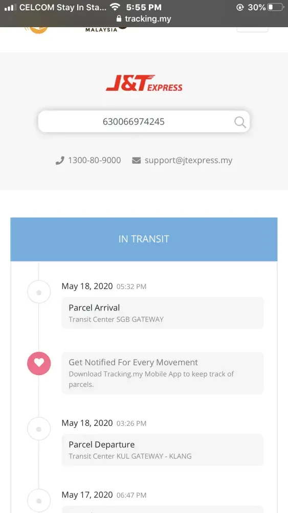 My parcel was picked up by the courier on the 4th of May 2020. Pick up point - PJ old town. Delivery address is in Puchong, so it's within Klang Valley. Since 9/5 till today 19/5 it shows parcel in transit. I have emailed them twice, with no reply other than the std automated reply. Where is my parcel? And pls reply to emails. The worse courier company ever.