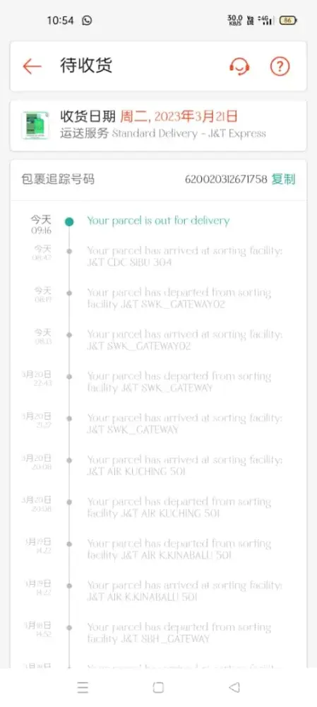 Afternoon , my order should be received by 17/3-19/3 but until today i still didnt receive my order . And but parcel still stuck at jnt cdc bahagian kch 312 bahagian kch . And sudah 2 hari tiada update dari jnt cdc kch 312 . Last update 20/3. I want my parcel as soon as possible .