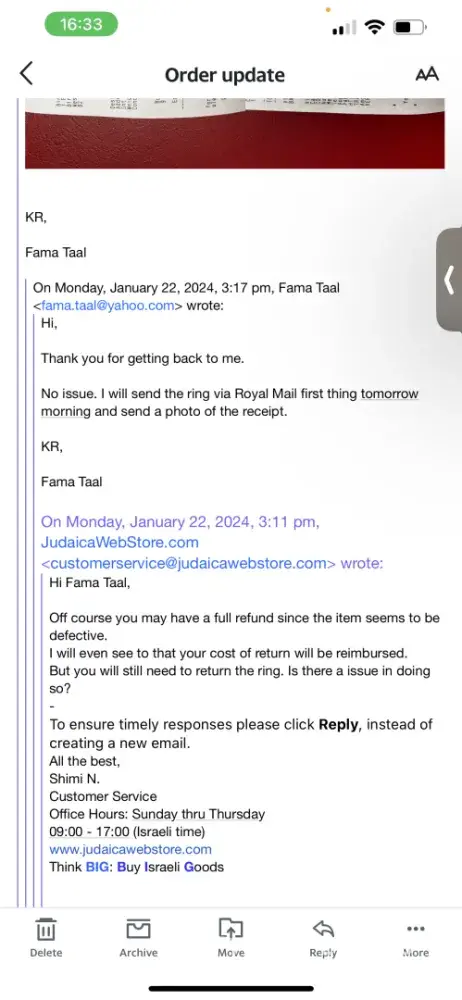 I believe Judaica Webstore is a reputable company. I have been ordering from them for years, and they have never made an error. Anyone can make a mistake, haven't you? Why don't you try giving them another chance?