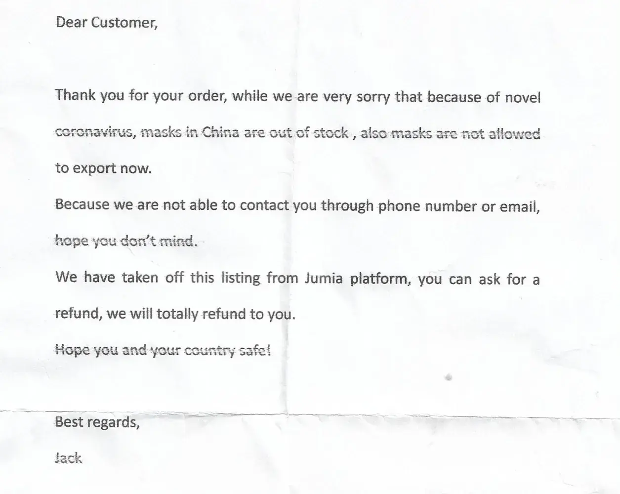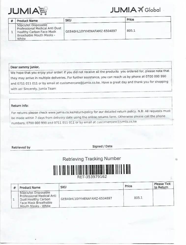 Ironically Jumia refused to return the masks!