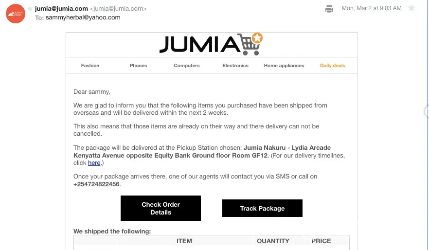 RE: Jumia Order [protected] has been confirmed & shipped.