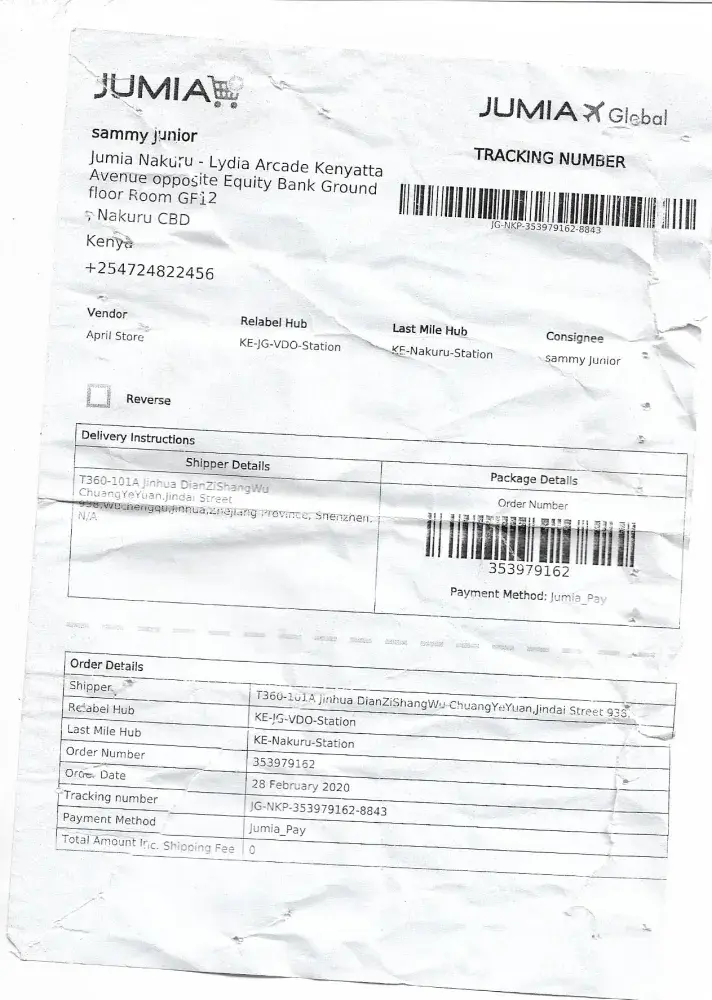 Jumia order # : [protected]