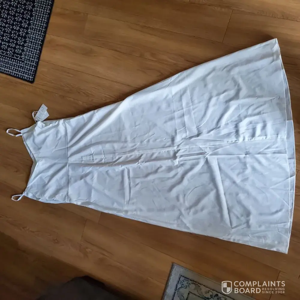 Wedding dresses are very hard to sell online because most women want new. I also don’t want to donate it to goodwill when I know that others have done that and didn’t receive their refund. They need to be held responsible for their policy and return my money and take their product back.