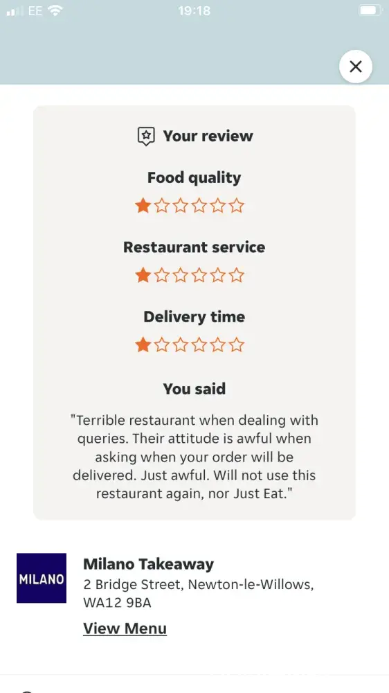 I tried to contact the restaurant but they refused to answer and Just Eat don't even have the option to cancel an order!
