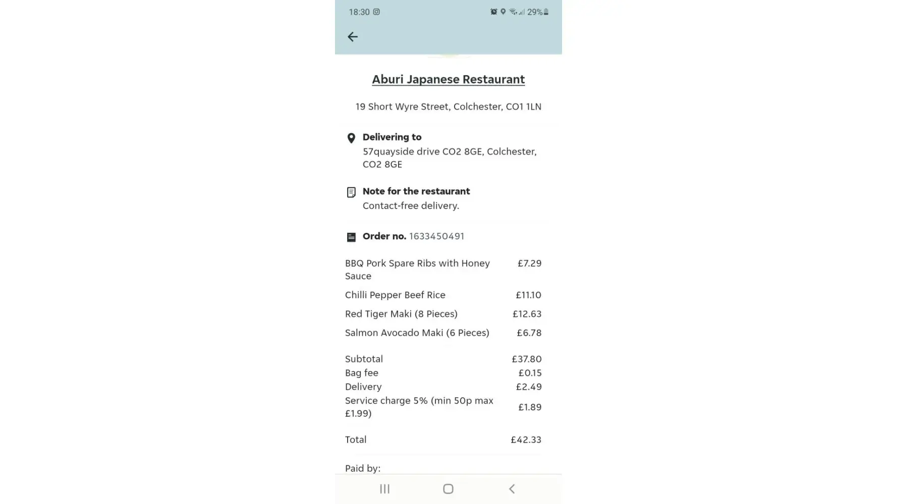 an unauthorised user used my account to order food and have it delivered.