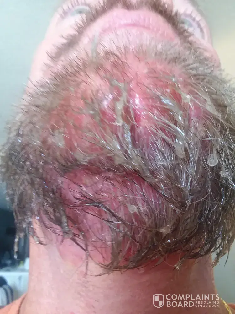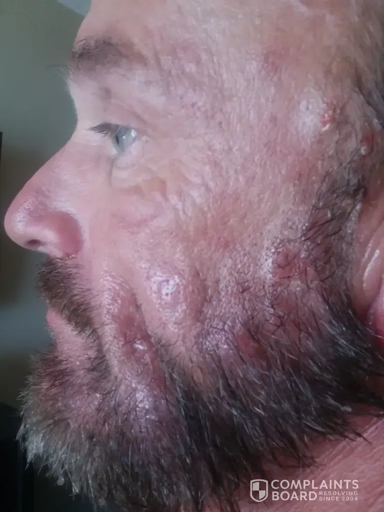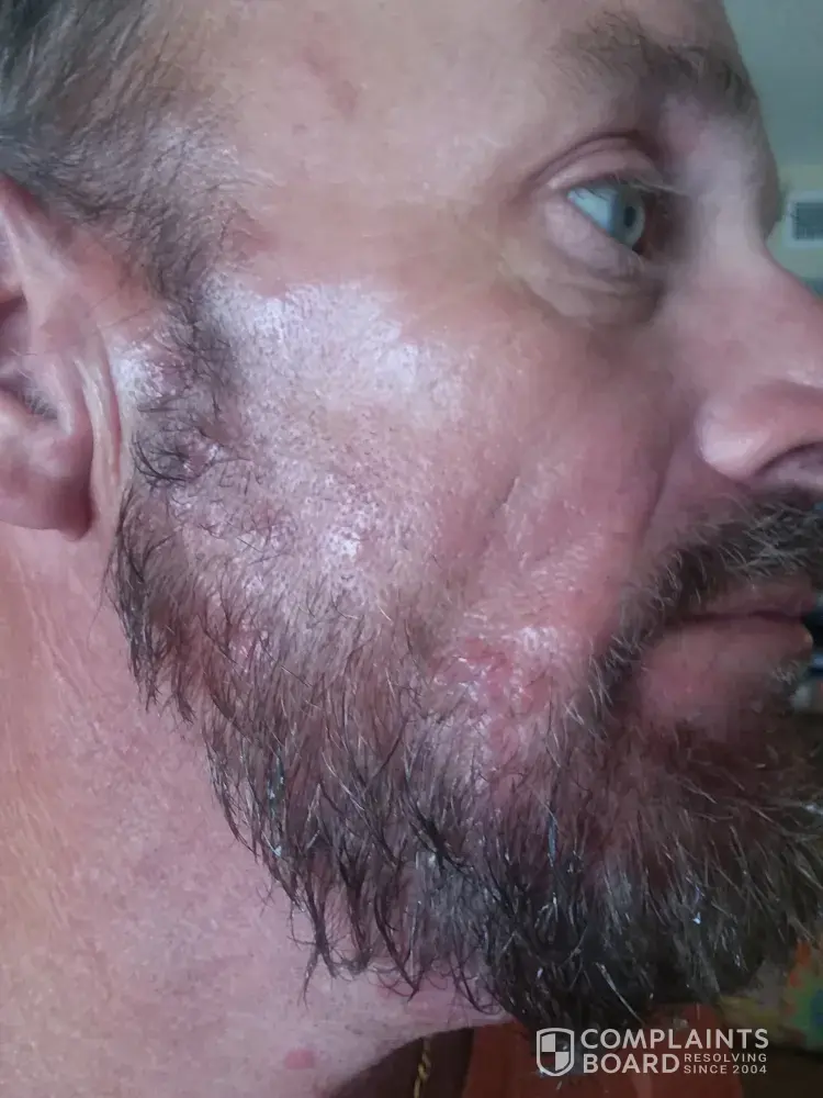 May 21, 2021 I used just for men beard & mustache product. I did my test area 1st on my beard. no reaction I put all over. woke up around 3 am with lots of pain, blisters on my face, neck and ears. They were oozing fluid from blisters. Patches of my beard hair has come out.. I have called my Doctor. Waiting on her advice.David Farley [protected]@gmail.com