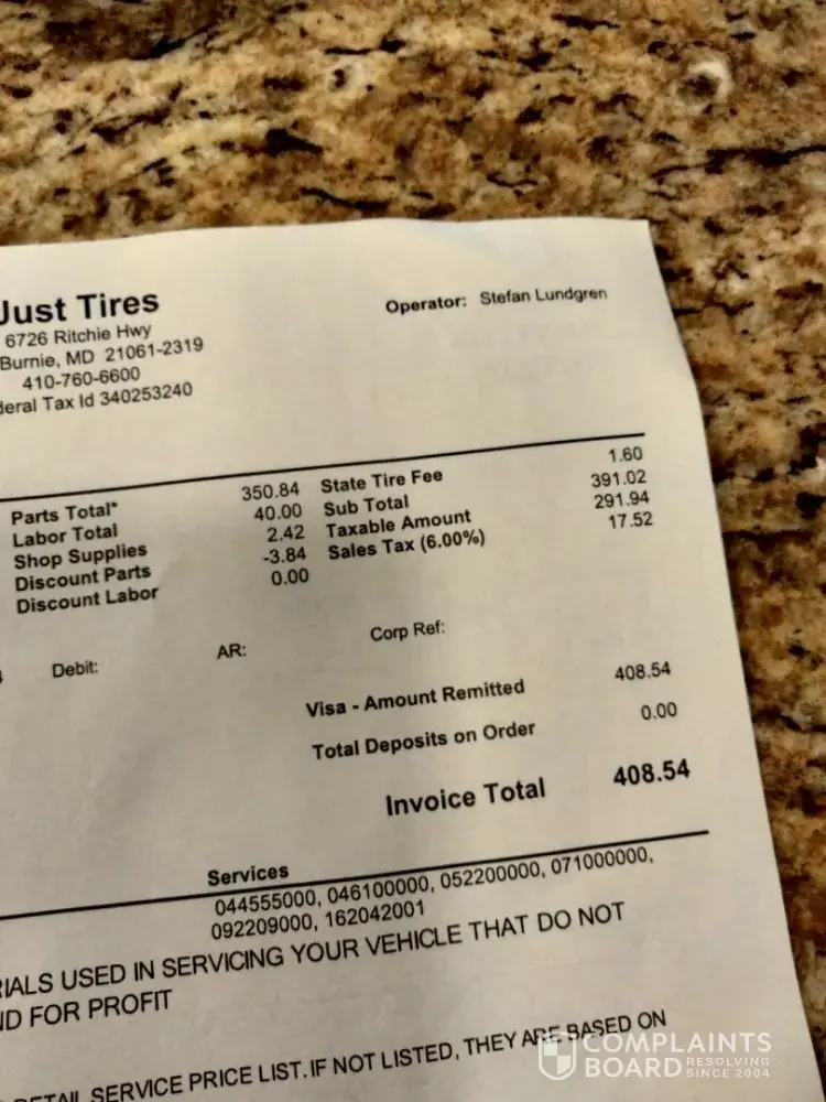 So I called AAA to have them come change my battery. 3 AAA service calls and 350 for the battery change. And, the only thing I'm upset about is the response from and service at Just Tires. This place shouldn't even be open for business.