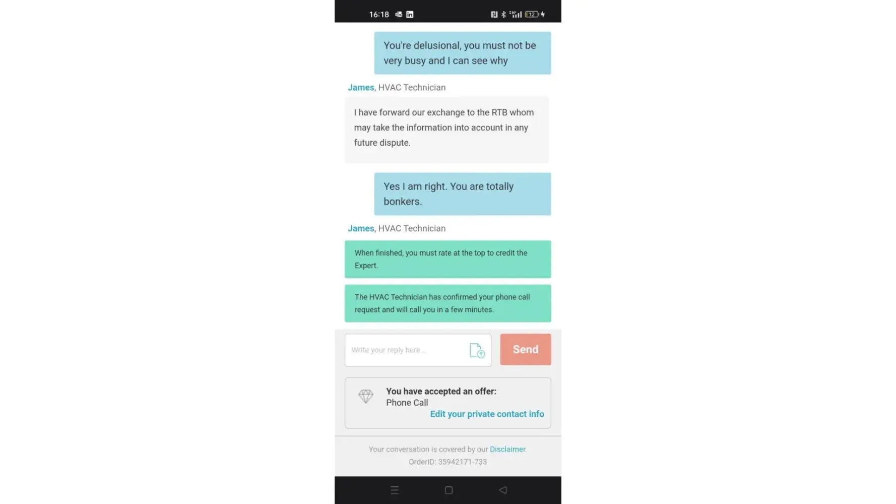 I have forward our exchange to the RTB whom may take the information into account in any future dispute.