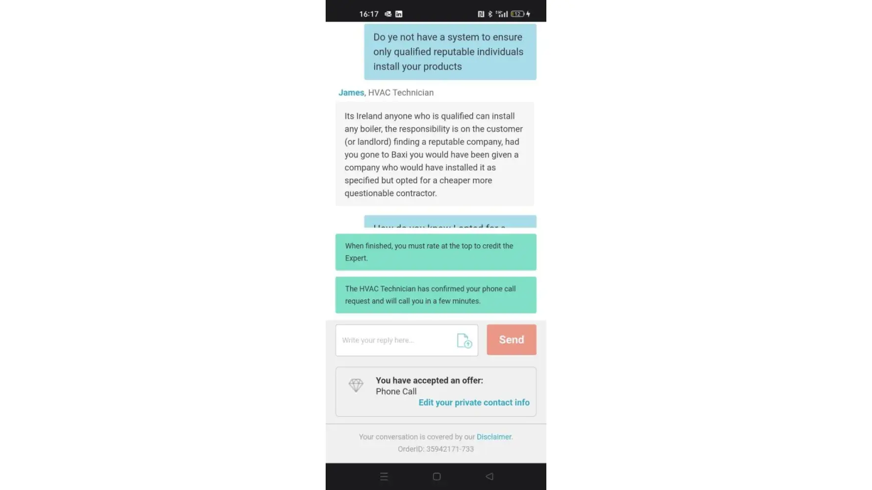 As I say its your choice as to the "individuals" you chose, but the install is not done to manufacturer specification so you may run into similar issues if asking for advice for your boiler in the future.